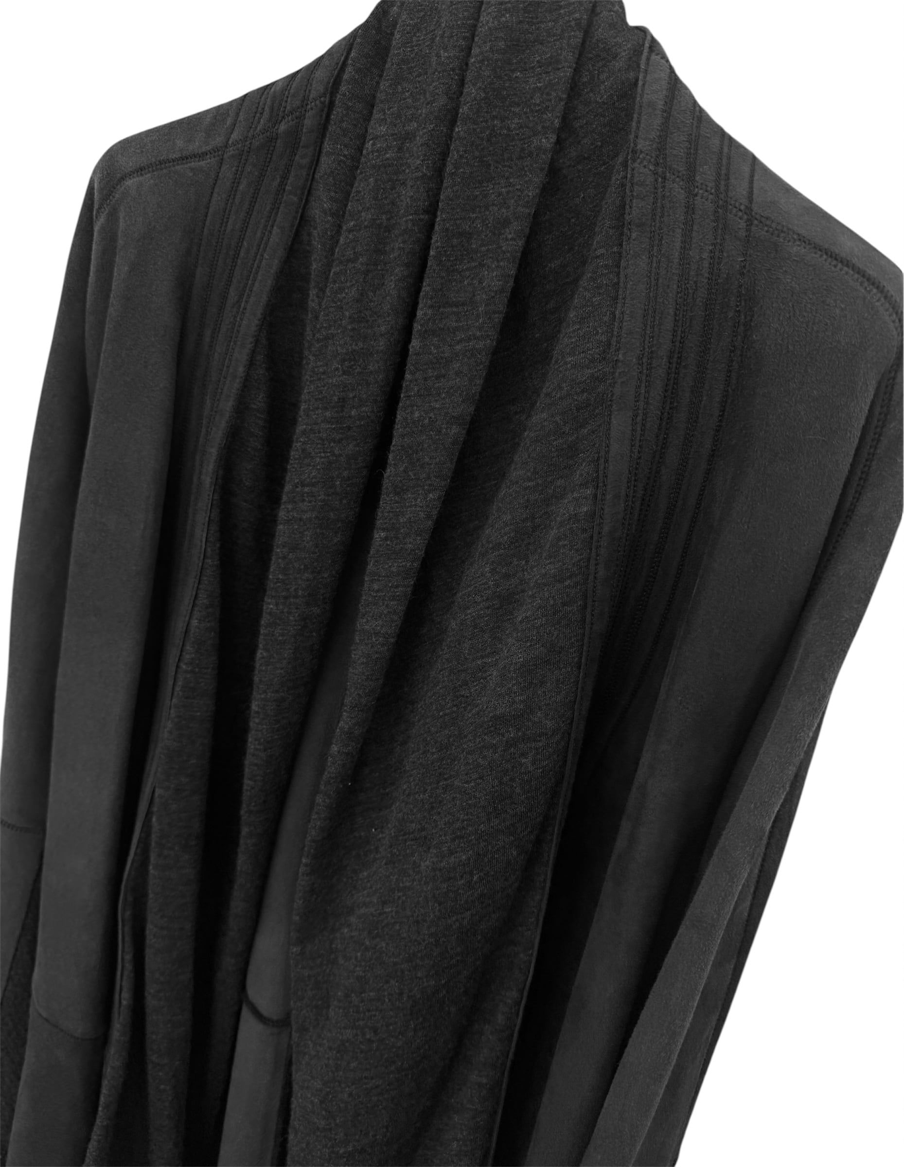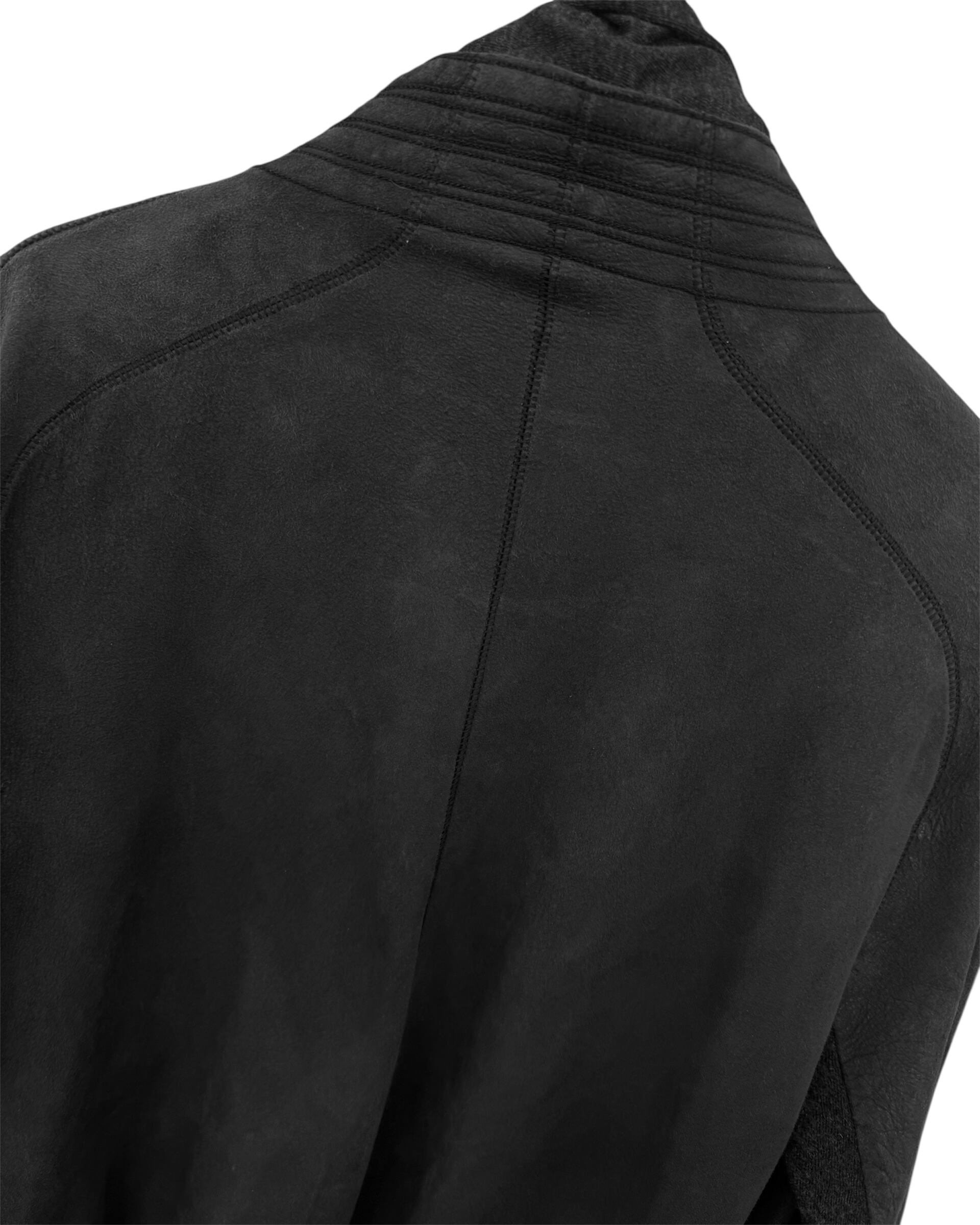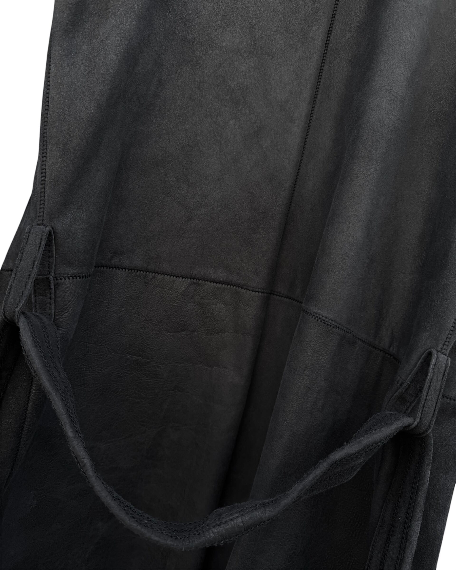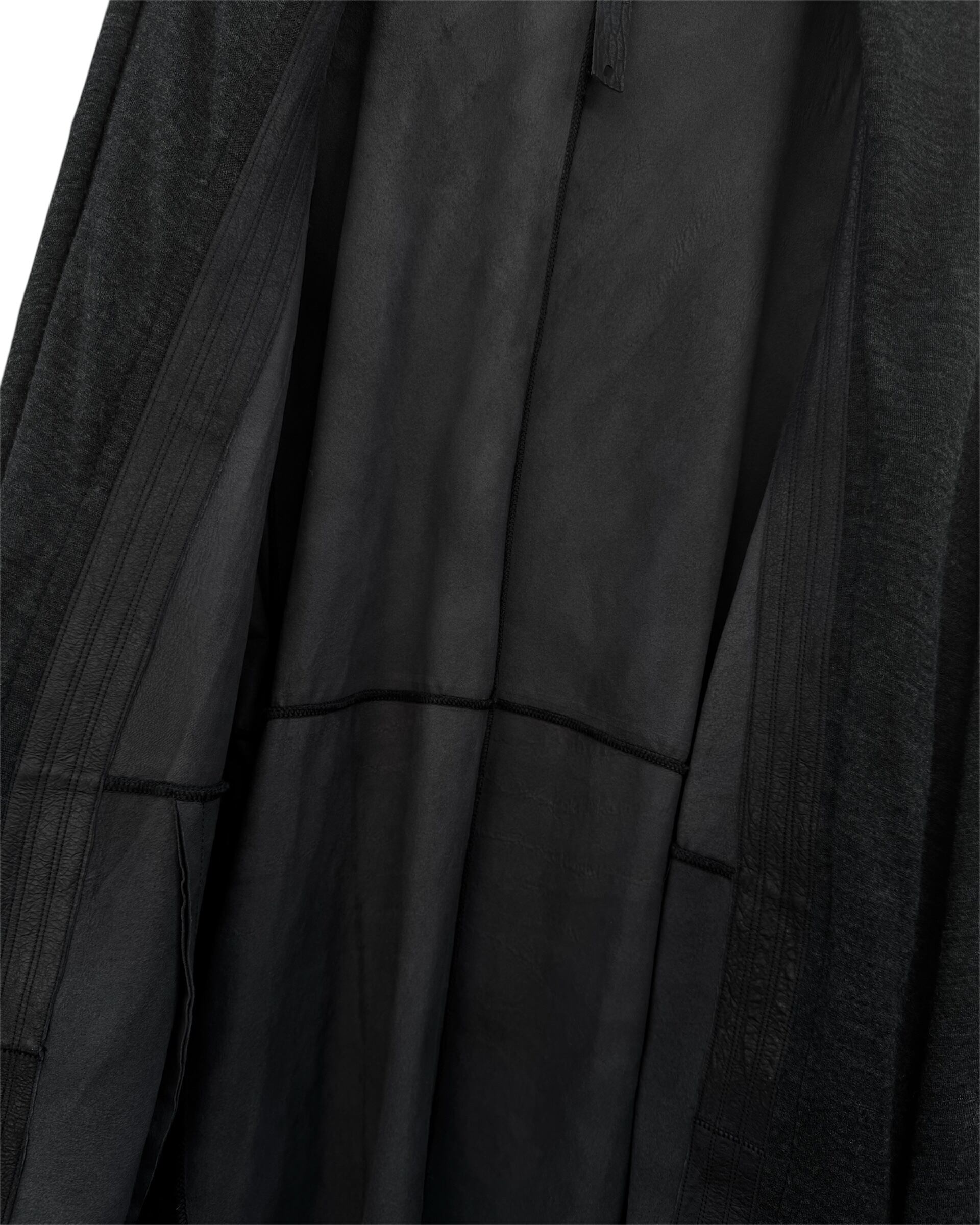 "Leather Belted Coat with Draped Fabric Panel"